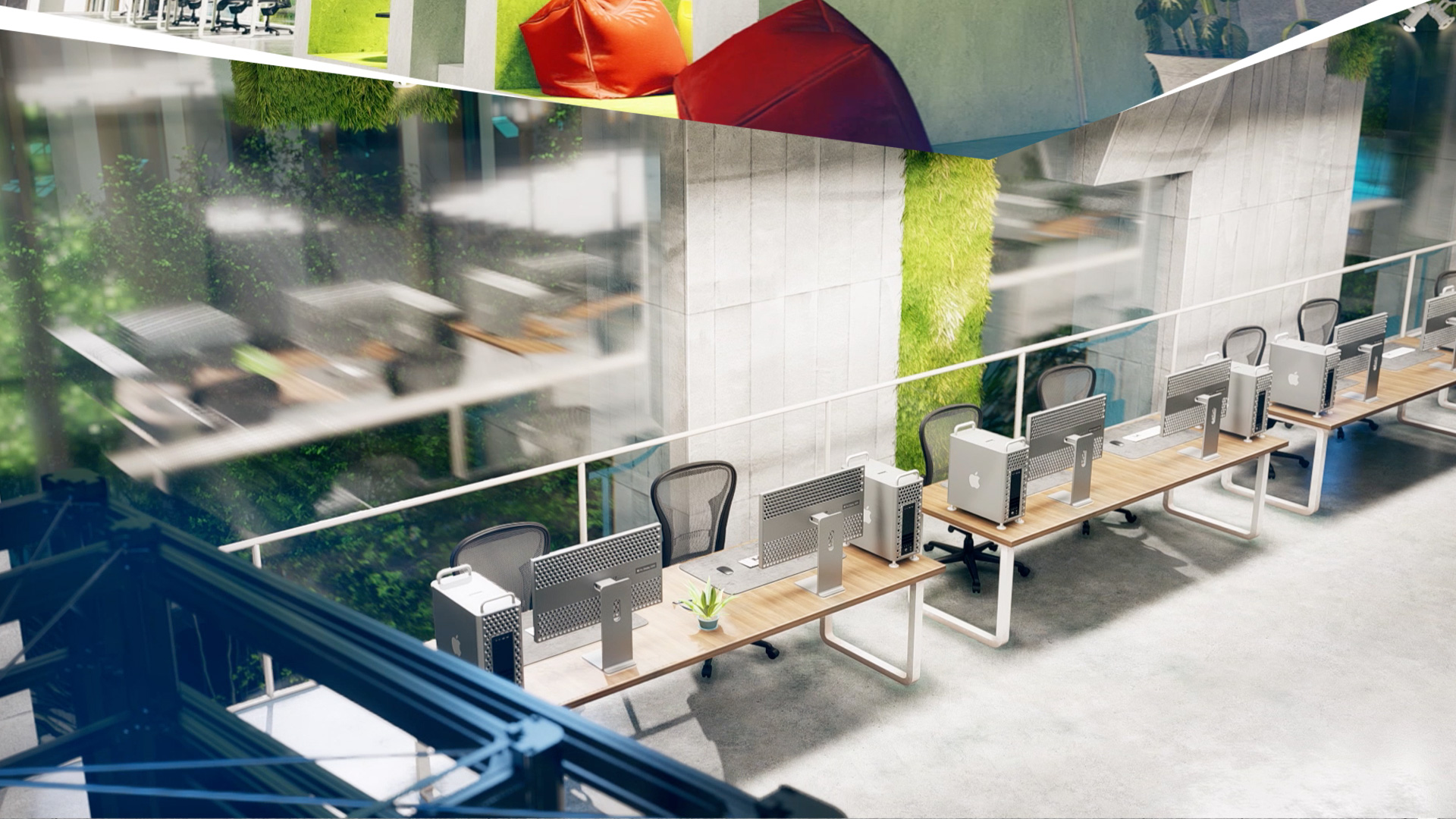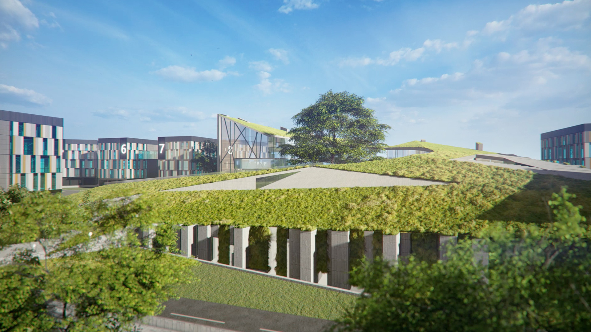 This is FAST innovation campus. Our camera soared through the high walls, entered tiny angles, flew through halls, hovered over the roofs, ran along with the garden bushes, shook the leaves of the greens, captured every move, raised up to eagle flight height to record a view from above, came down to zoom every small detail, caught the feeling of comfort and beauty. This single camera is the eyes of Domino animator, who can turn the virtual environment into a reality by sitting in front of the computer and doing gentle moves with his mouse. And this is the best way to present one of the biggest innovation campuses, which is a huge city with more than 3000 employees. This small example is to show the rest of the entire building we created through the visuals.
