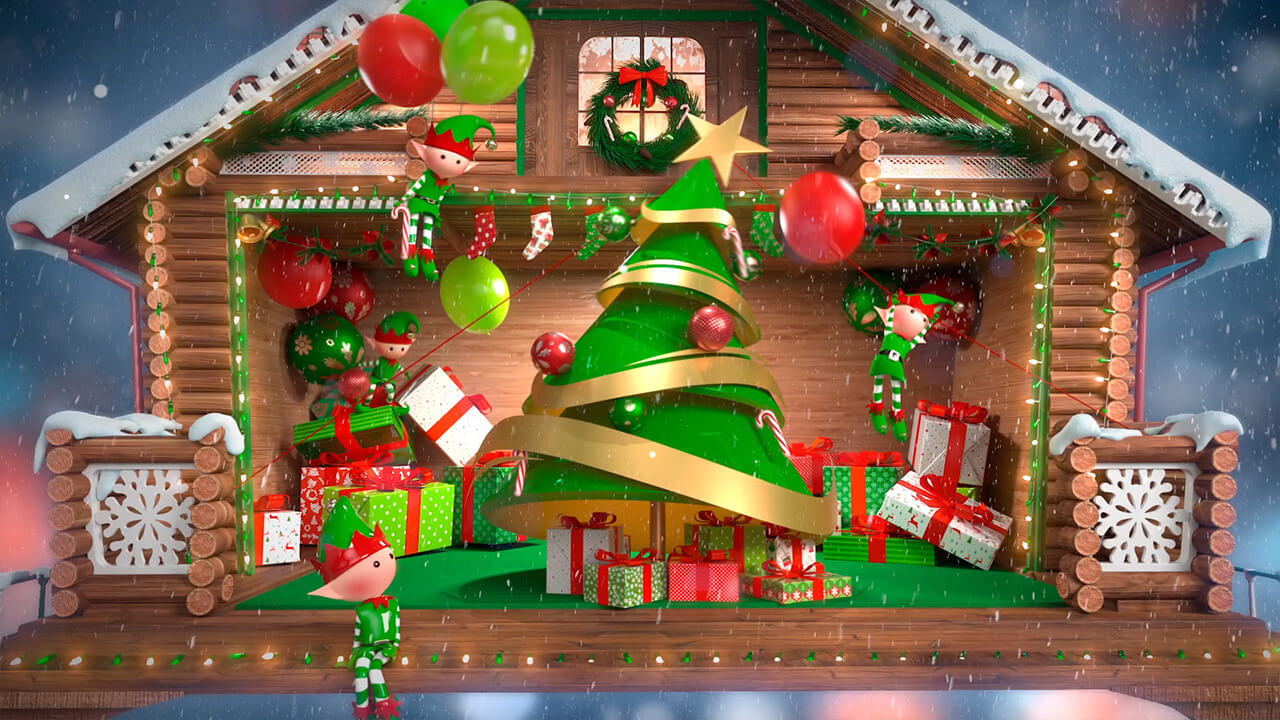 YOU ARE IN A TINY COTTAGE SURROUNDED BY THE NEW YEAR CHARACTERS WHICH WILL KEEP YOUR NEW YEAR SPIRIT AS HIGH AS IT CAN BE