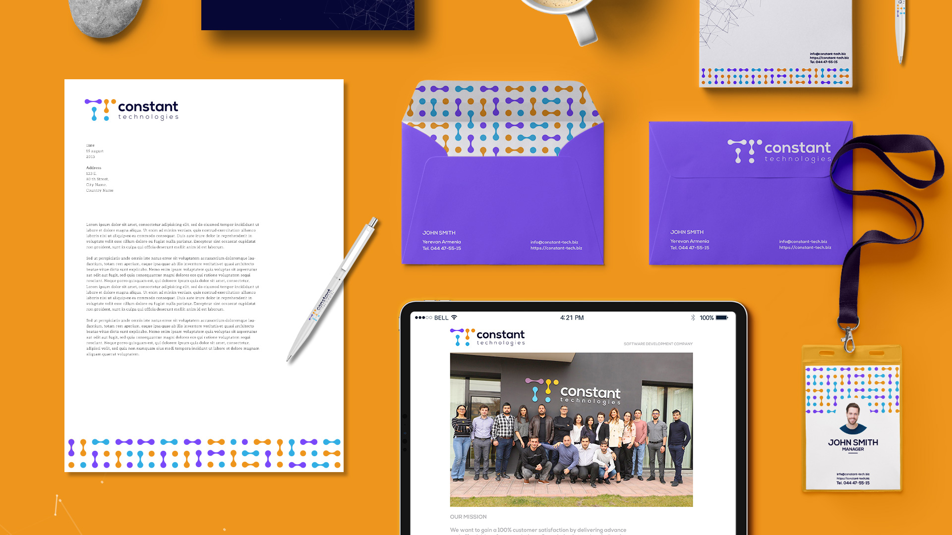 Armenia is one of the leading countries in the world in the sphere of IT and there is always a constant bloom of aspiring IT companies. Constant Technologies is one of them. It is an Armenia based IT company with offices in Israel. It hopes to become a trusted IT partner internationally. To present the whole concept of an IT company we decided to focus on the idea of nanotechnology. It is supposed to manipulate matters to receive the desired form. So, we did the same with the branding. It is evident that the logo symbolizes how nanotechnology manipulates matter and creates different forms and shapes which look like floating in the air or space, similar to magic. The same design was used on letter heads, envelops, badges, pens, business cards and so on.