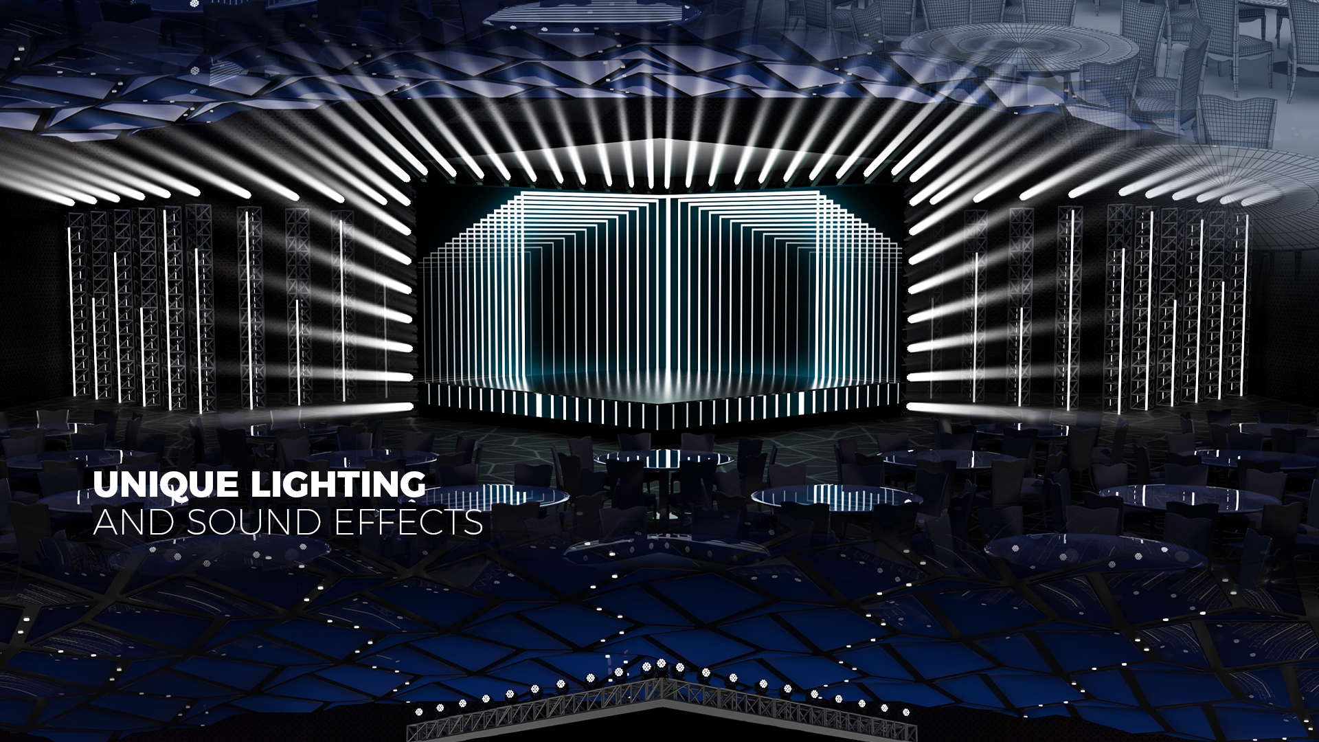 It should not be a common and standard stage, and it should not be a standard animation. This is an axiom! Every project we work on gets a unique creative touch that our team gives. This time it was the shape of the stage and the 3D mystic and breathtaking animation.