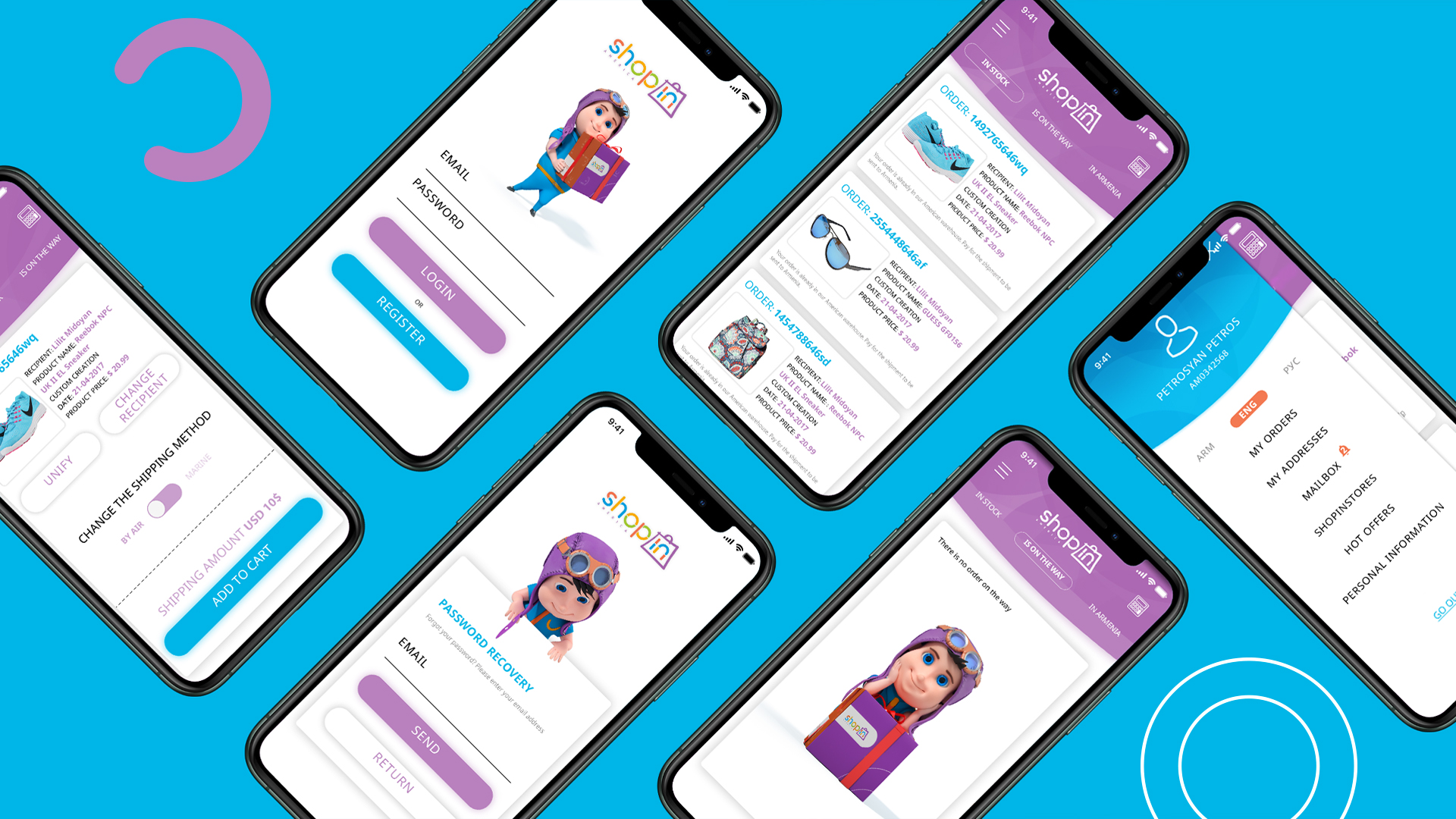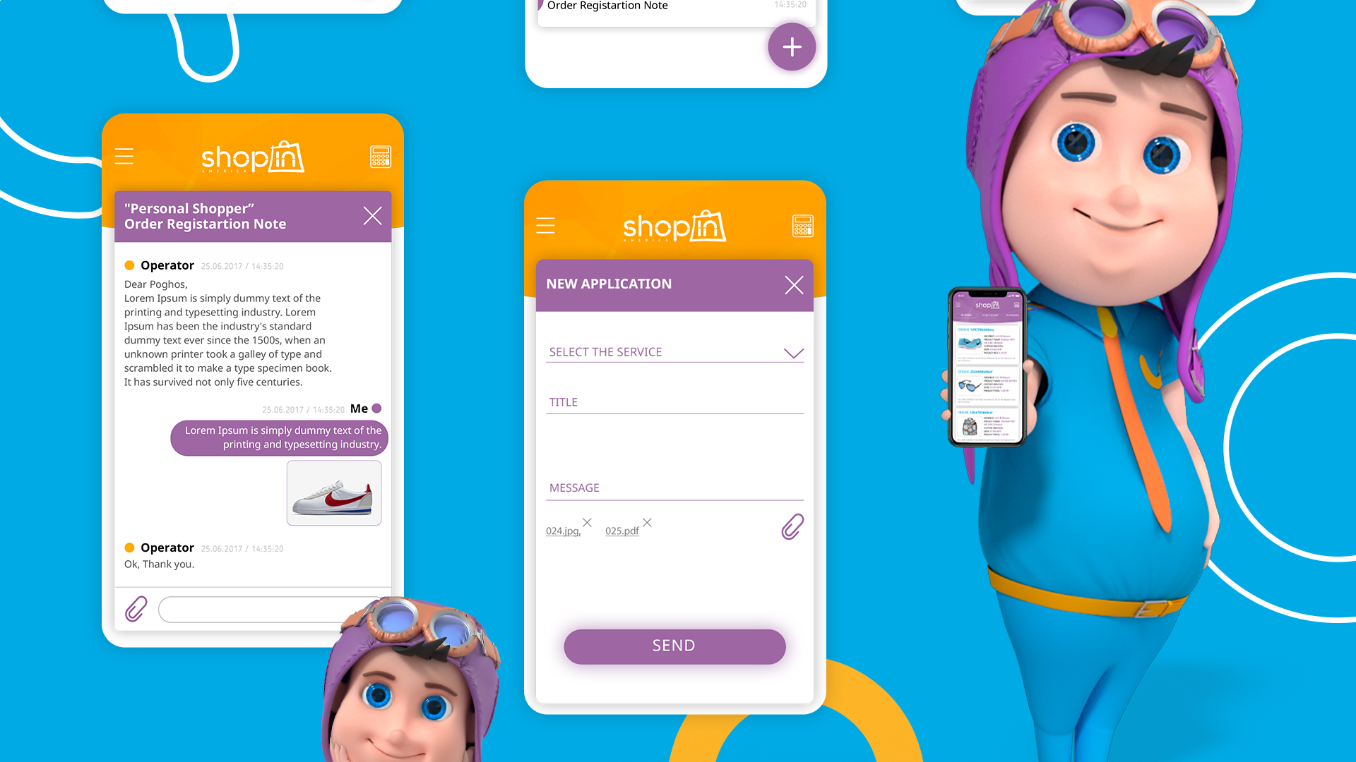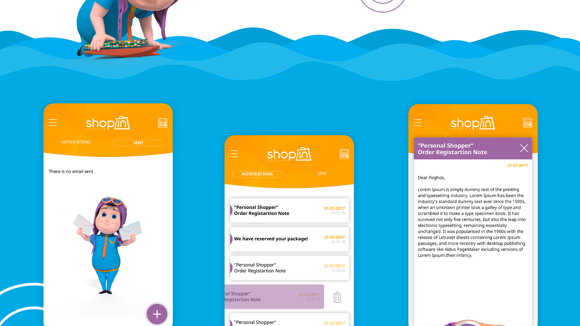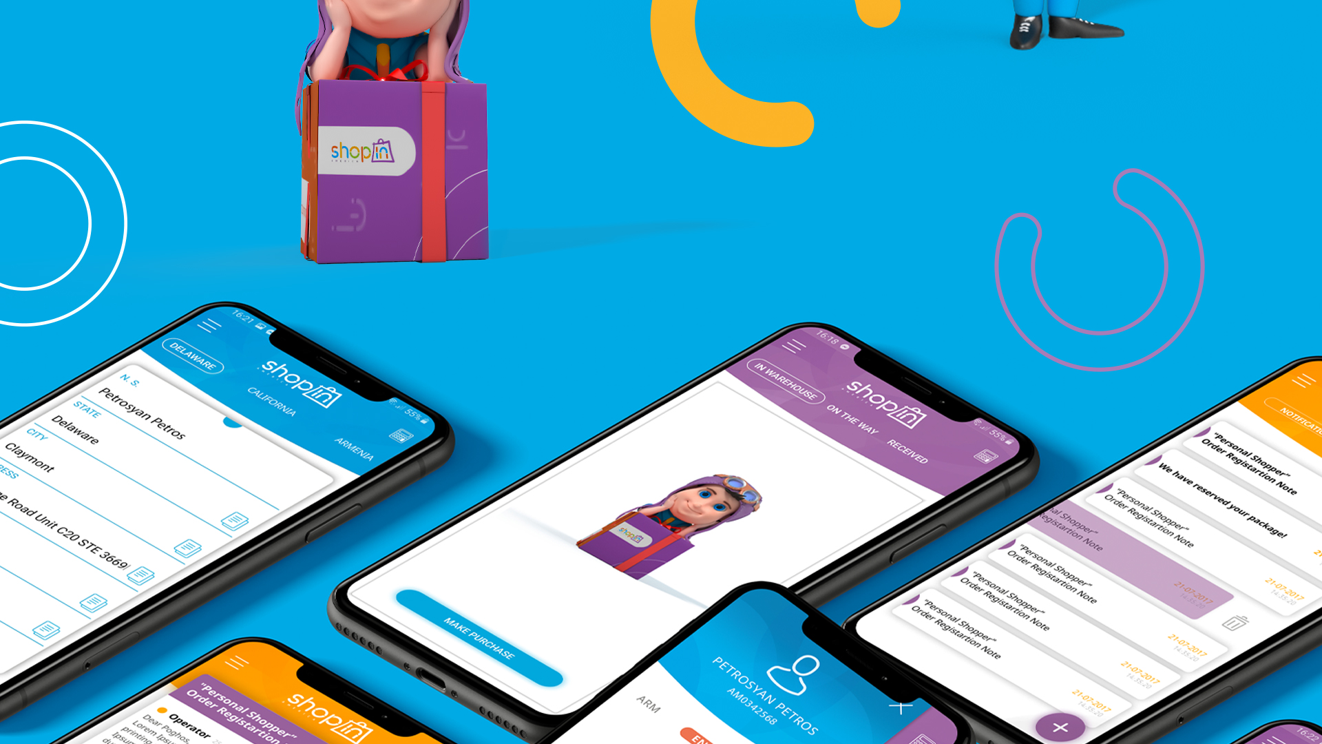 A part of a re-branding ShopIn America was also developing a mobile application for it. Our beloved 3D character is present in the applications as well leading the customer through it and helping to purchase items. The application is designes with the bright and light colors of ShopIn America which are as bright and easy as using the it. It is very user-friendly and the customer will have no complications with it.