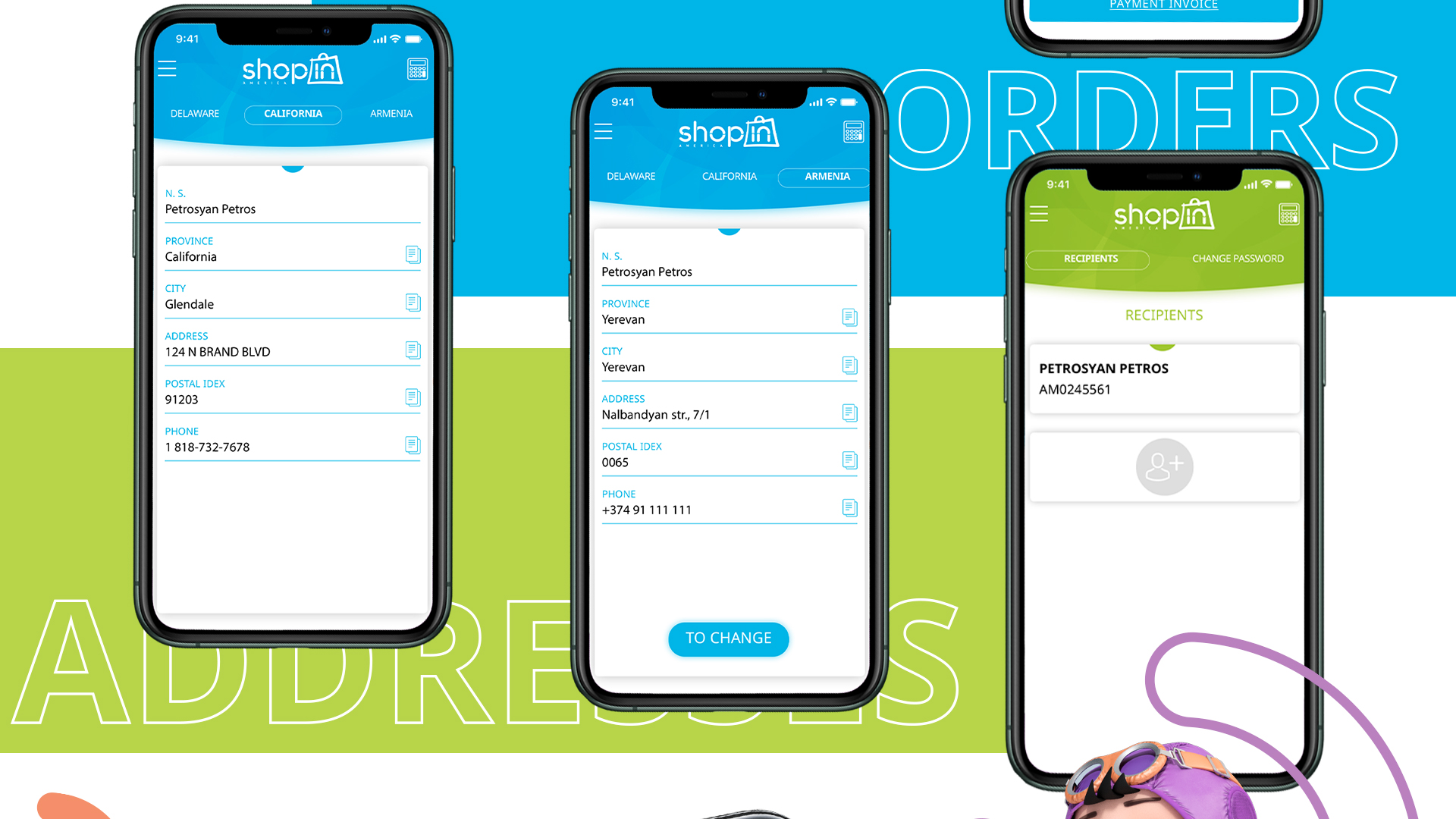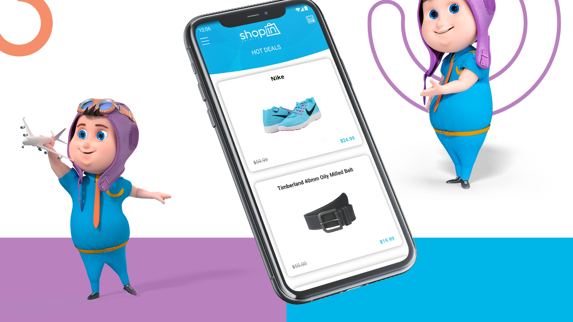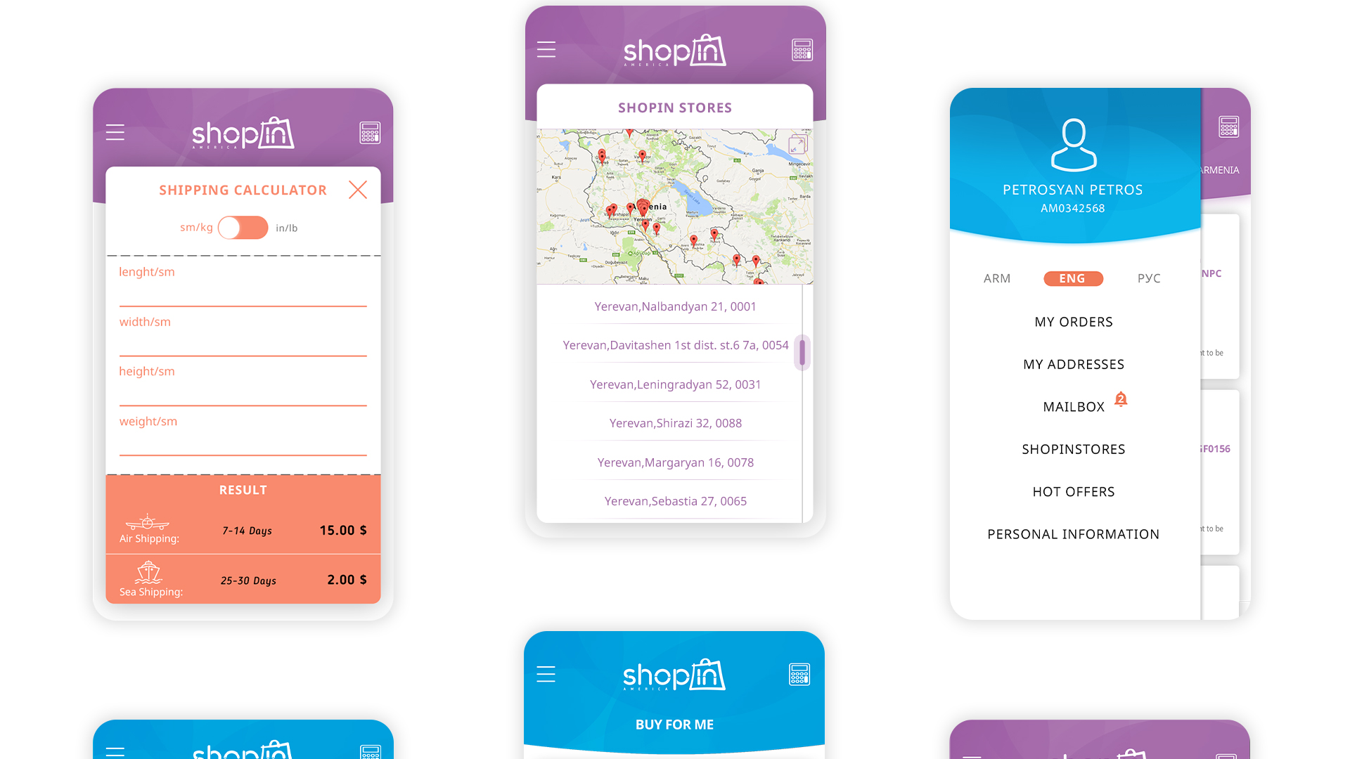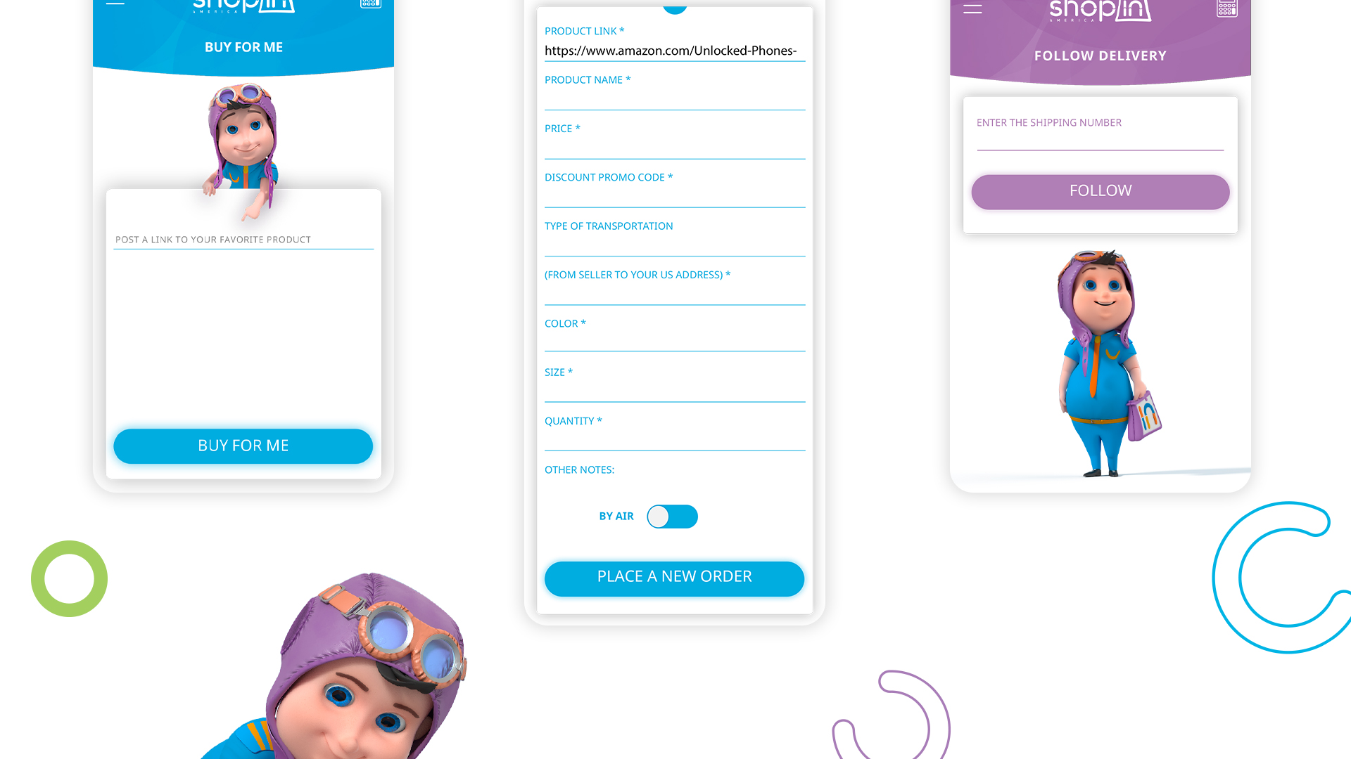 A part of a re-branding ShopIn America was also developing a mobile application for it. Our beloved 3D character is present in the applications as well leading the customer through it and helping to purchase items. The application is designes with the bright and light colors of ShopIn America which are as bright and easy as using the it. It is very user-friendly and the customer will have no complications with it.